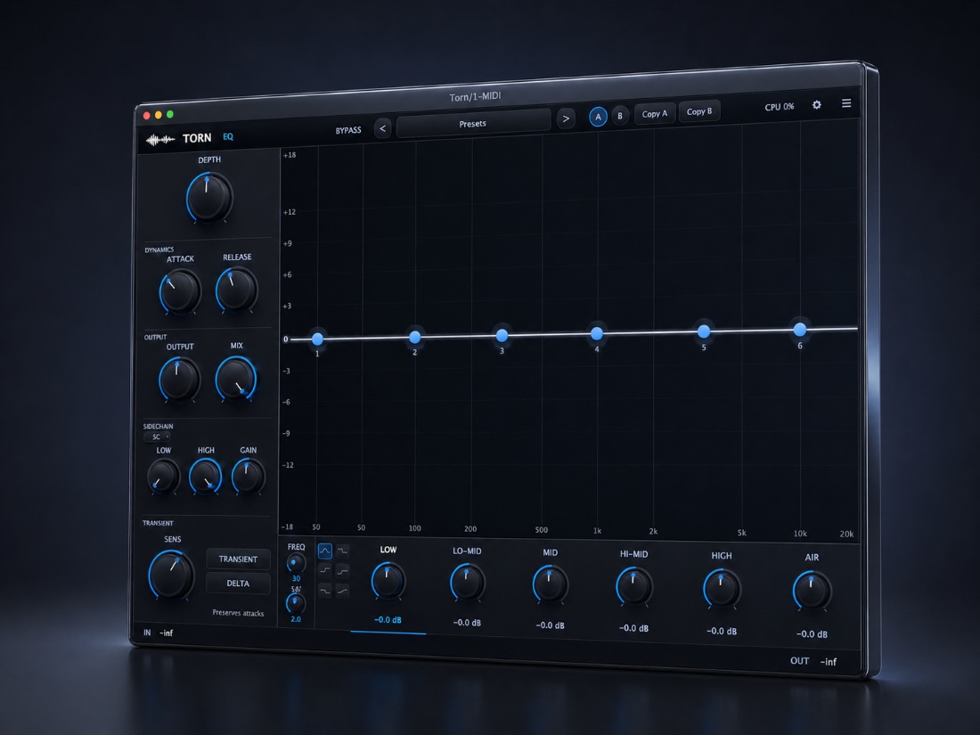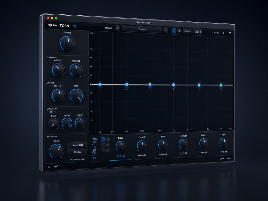 A six-band dynamic EQ with transient detection, multi-band sidechain and a depth engine that breathes. Built for engineers who carve tone for a living.